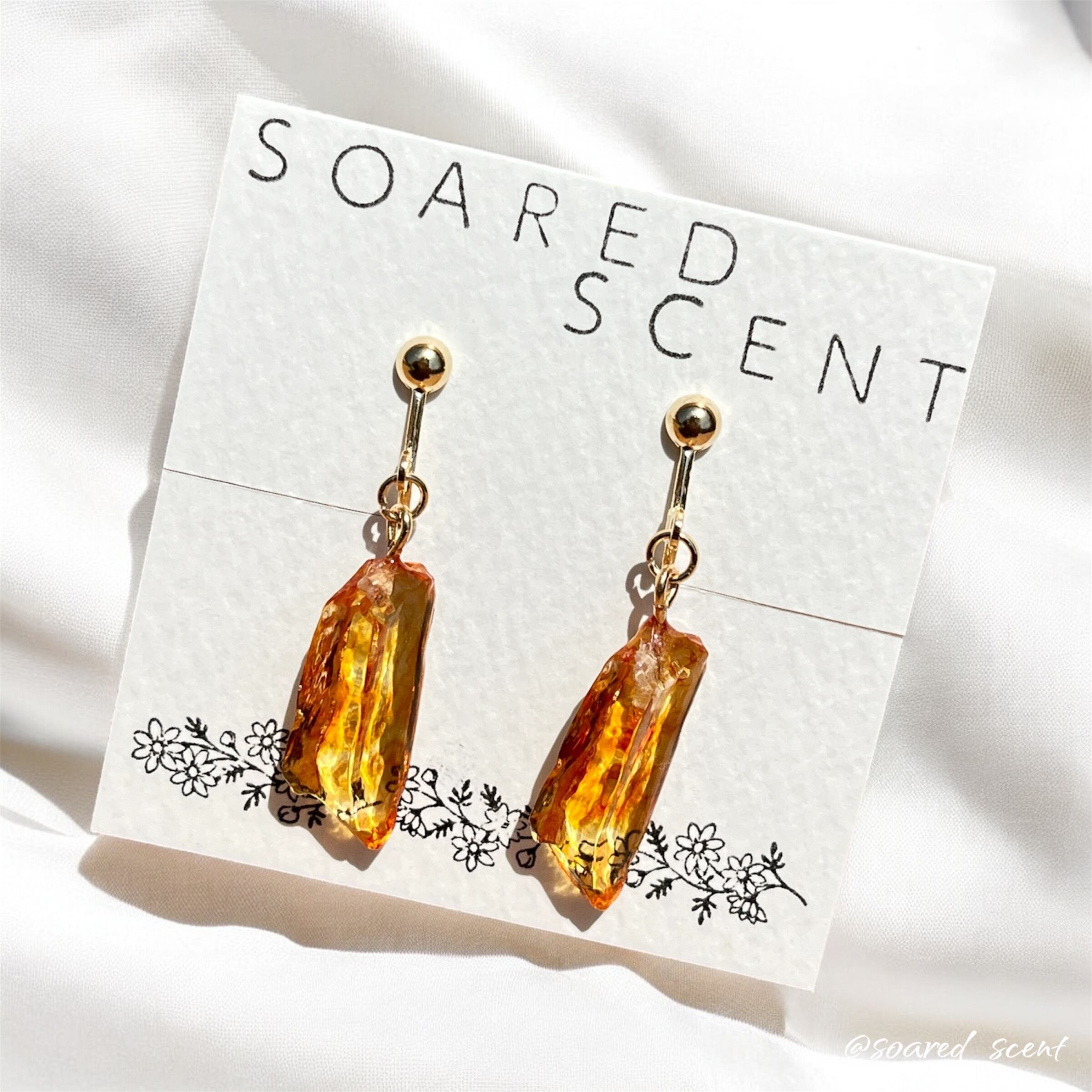 ひとつひとつ丁寧にハンドメイドされたアクセサリーは、ガラスのような透明感と、光を受けたときのキラリとした輝きが魅力。シンプルなファッションに彩りを添えたり、推し色を身につけて日常をちょっと楽しくしてみたり…。