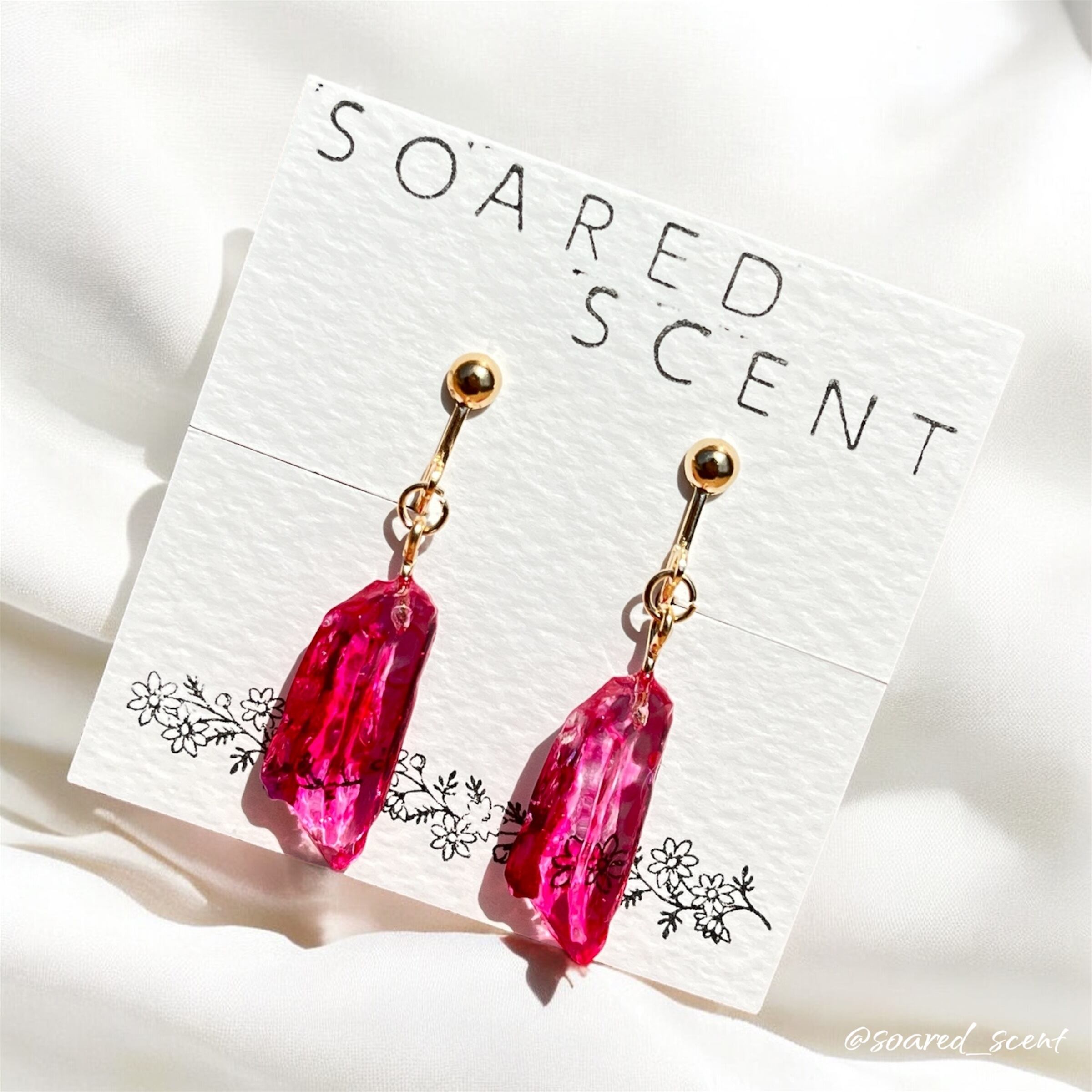 透き通るようなクリアカラーが耳元で揺れる、ポップで華やかな鉱石風アクセサリー。豊富なカラーバリエーションで、その日の気分やコーデに合わせて自由にセレクトできます。ペアでも、色違いでシェアしても楽しい商品です。