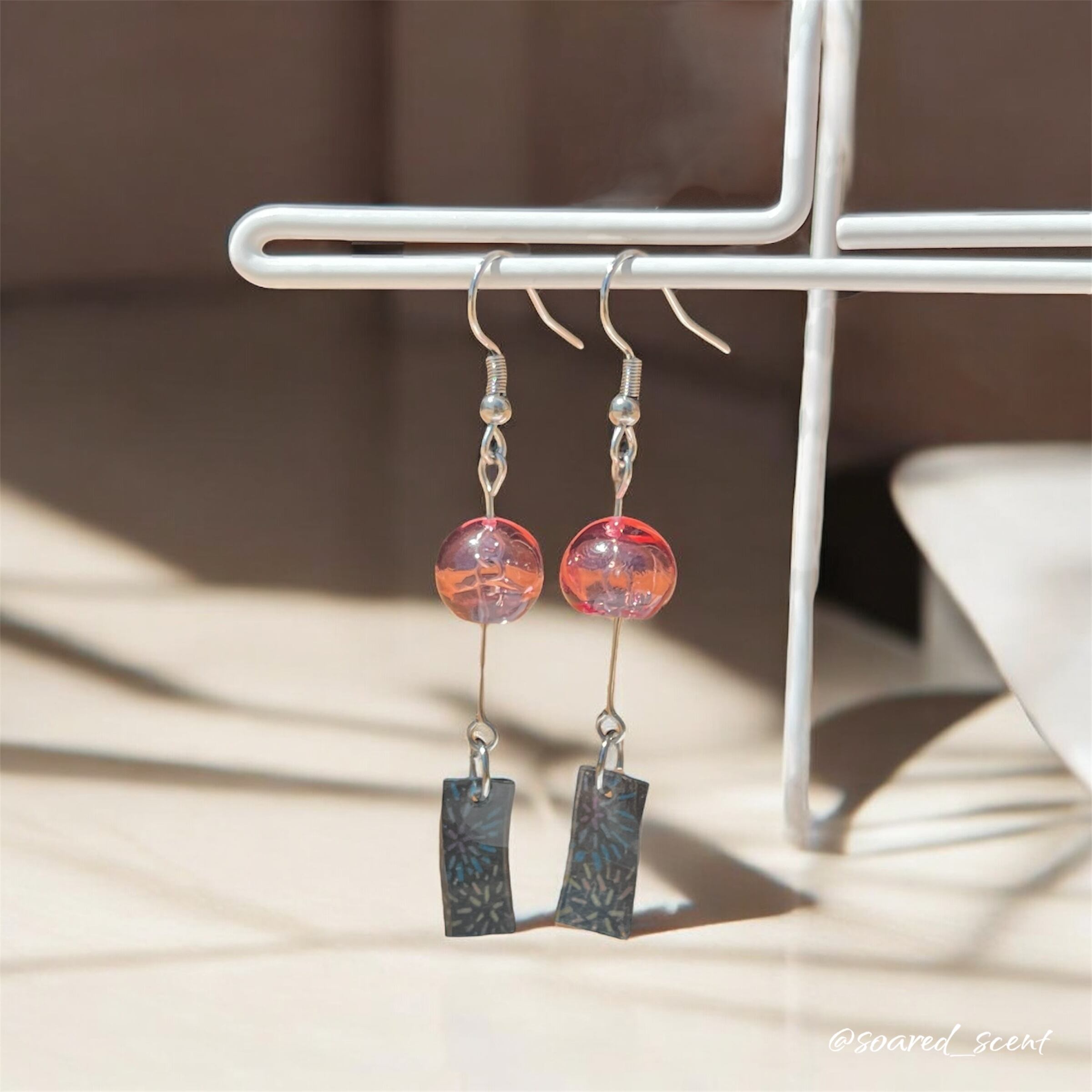 ガラス風鈴のように、涼しげな音色が聞こえてきそうなピアスです。